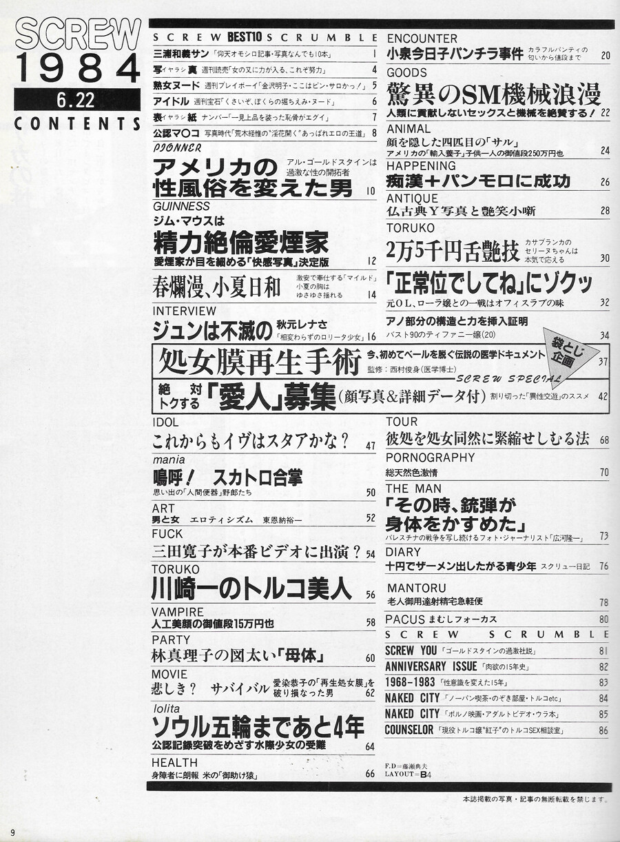 ビニ本・裏本・裏ビデオ情報誌へと変貌していく過程も『オレンジ通信』と同じであった。”
